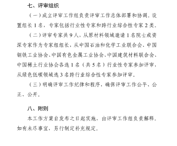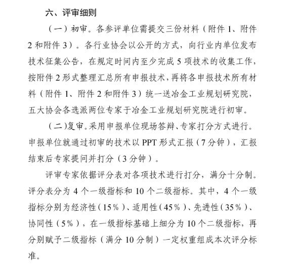 本次遴選工作由工業和信息化部原材料工業司統籌指導,冶金工業規劃研究院負責業務支撐,由中國石油和化工工業聯合會、中國鋼鐵工業協會、中國有色金屬工業協會、中國建筑材料聯合會、中國稀土行業協會(以下簡稱五大協會)組織推薦,經專家評審,遴選出 20 個先進適用低碳技術,并由五大協會共同發布。