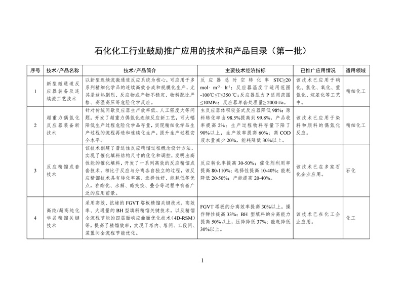 為提升石化化工行業智能制造、安全環保水平,經地方及相關單位推薦、專家評審和對外公示,現將石化化工行業鼓勵推廣應用的技術和產品(第一批)予以印發。請各地工業和信息化主管部門加大宣傳推廣和政策支持力度,為加快推動石化化工產業轉型升級提供技術支撐。